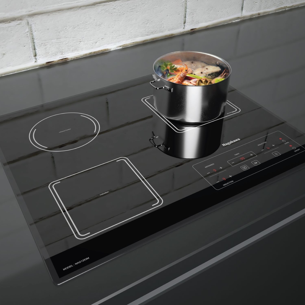 – Chống nhiệt lan tỏa, tự nhận diện vùng nấu, cảm ứng quá nhiệt, cảm ứng trào nước và khóa an toàn