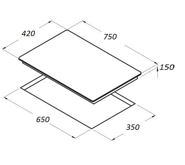 - Kích thước bề mặt: 750 x 420 x 150 mm