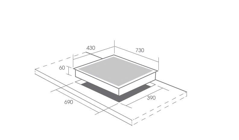 | Mặt kính | Kính Vitro Ceramic, màu đen, vát cạnh |