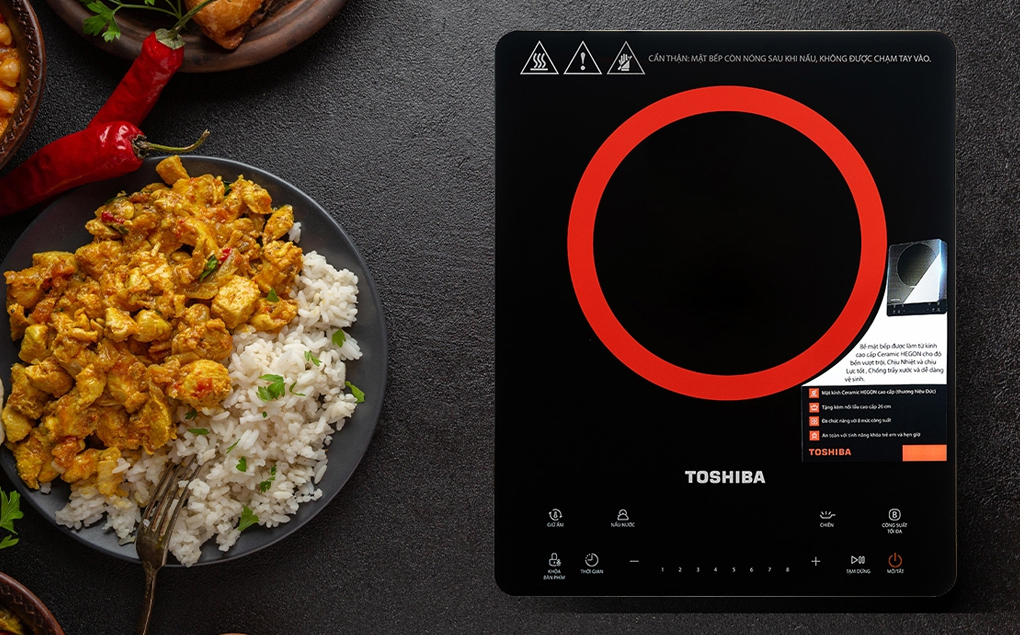 • Bếp điện từ đơn gọn đẹp, có 1 vùng nấu đặt được trên bàn ăn