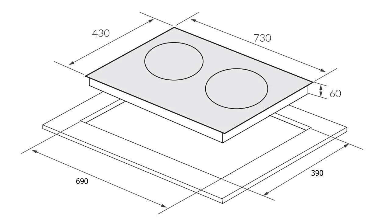- Kích thước mặt bếp: 730 x 430 mm