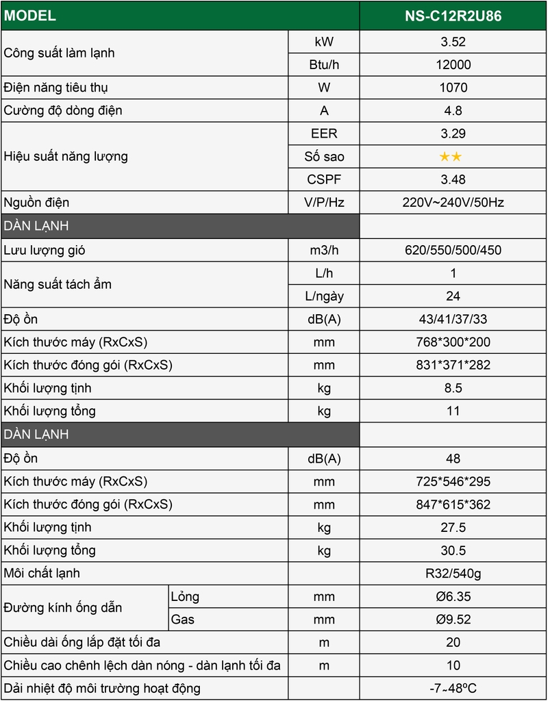 – Sử dụng môi chất lạnh thế hệ mới R32 thân thiện môi trường
