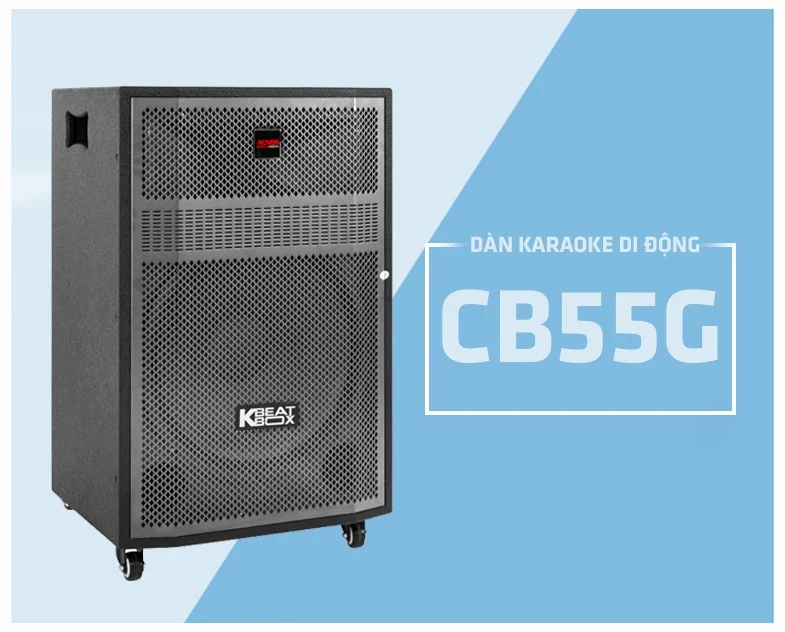Dàn karaoke di động KBeatbox CB55G được thiết kế với vỏ thùng gỗ, nhẹ được sơn sơn chống nước. Mặt trước của loa được trang bị mặt e căng thép chịu lực bảo vệ tốt cho hệ thống màng loa ở bên trong.