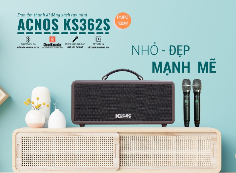 Acnos KS362S là mẫu loa Karaoke di động có kiểu dáng NHỎ, ĐẸP VÀ MẠNH MẼ thuận lợi cho việc di chuyển du lịch hay dã ngoại. Tải bài hát offline qua app CloudKaraoke. Hàng chục ngàn bài hát chất lượng cao. Dàn loa Acnos KS362S có kiểu dáng đẹp cùng công suất khiến người dùng cũng phải ngỡ ngàng về chất âm mà mẫu loa này có thể đạt tới.