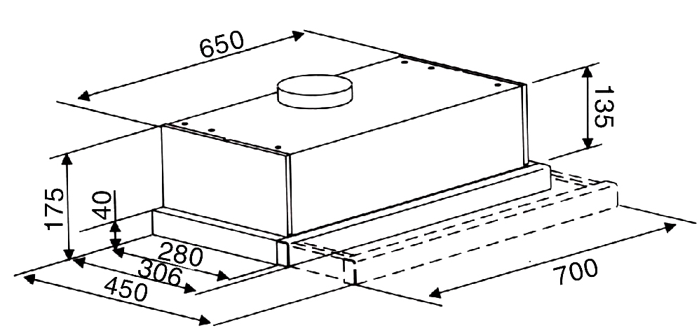 - Loại máy: Máy hút mùi âm tủ