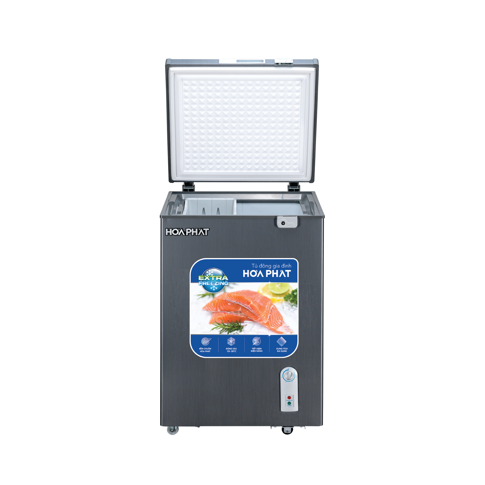 - Tủ đông Hòa Phát HPF AD6107G sở hữu công nghệ Extra Freezing đông sâu tới -30 độ C (*Dựa trên kiểm nghiệm nội bộ từ NSX), dàn máy nén khoẻ và hệ thống chống thoát hơi lạnh với lớp bảo ôn dày 63.5mm
