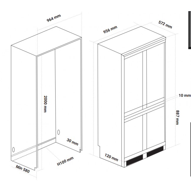 • – Thiết kế âm tủ với cửa có thể lắp mặt gỗ phía trước theo ý thích và thiết kế riêng của từng gian bếp