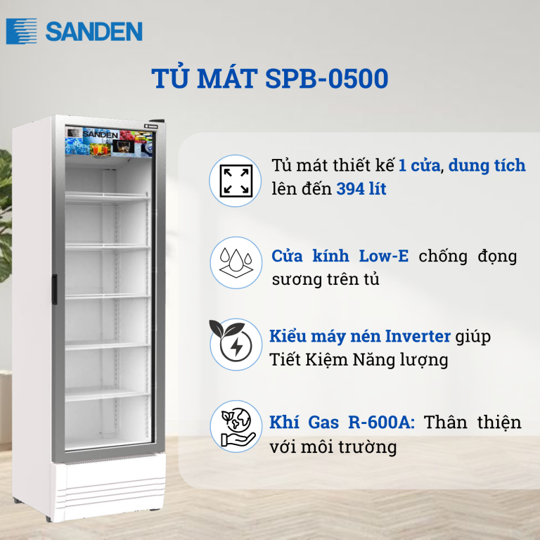 Tủ mát 1 Cánh Inverter Sanden 394 Lít SPB-0500