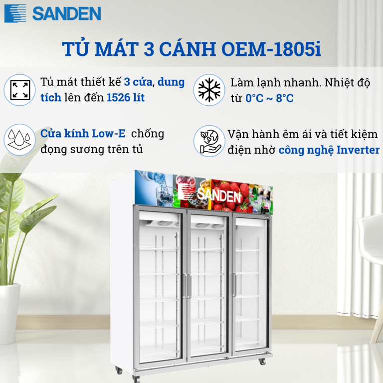 Đánh giá Tủ mát 3 Cánh Inverter Sanden 1500 Lít OEM-1805i